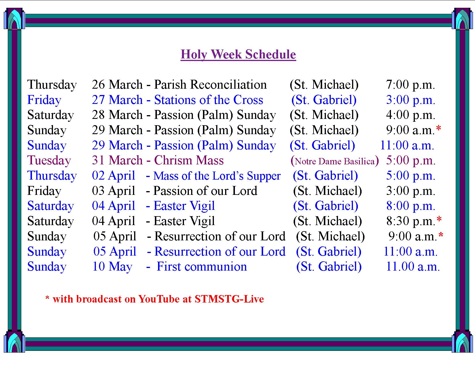 EASTER SHEDULE